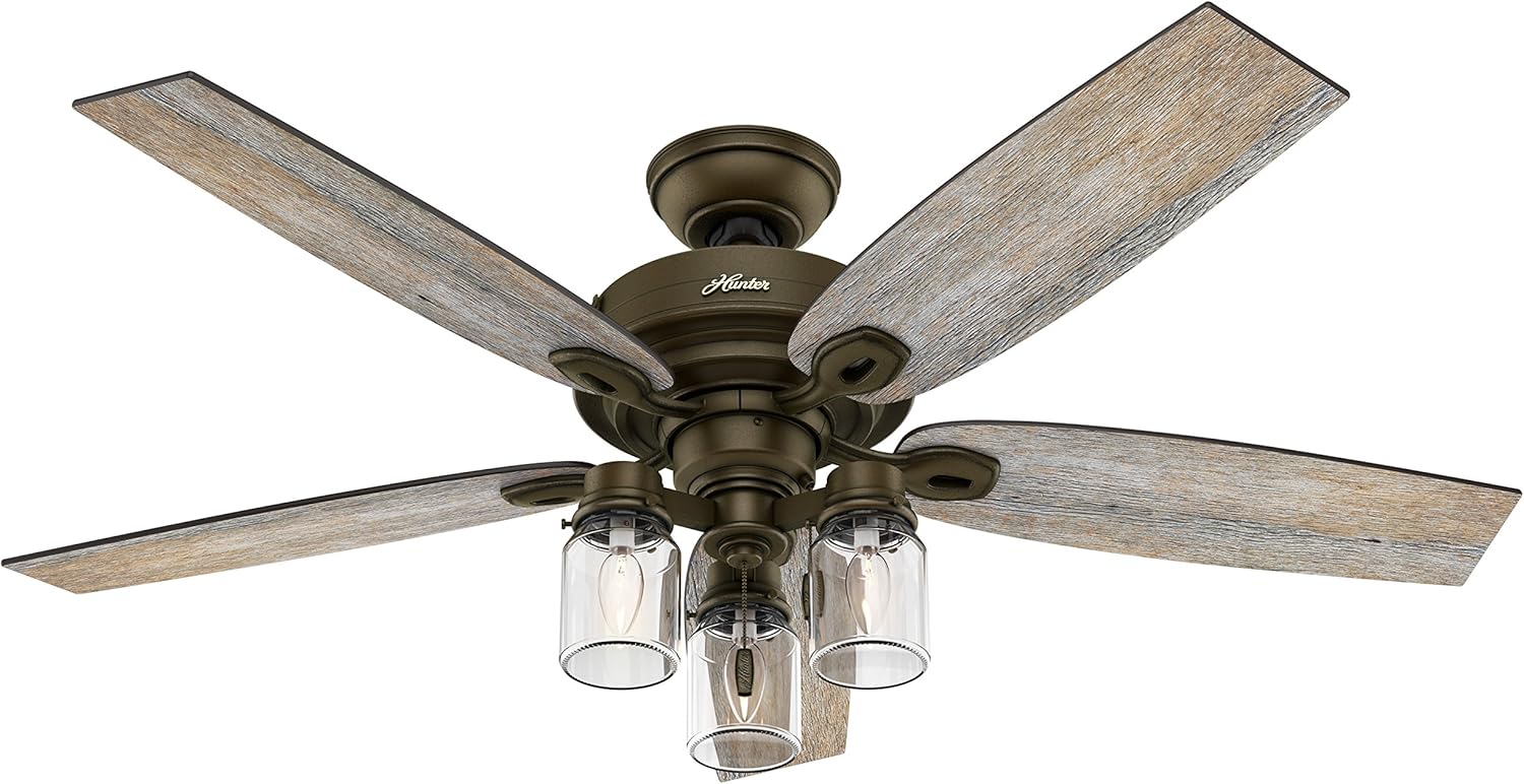 The hunter 52 inch ceiling fan with remote has a reversing function switch attached to the fan which moves in two directions which are called updraft and downdraft to change its pathway of the airflow. Hunter fan 52 inch casual natural iron indoor ceiling fan with light kit (renewed) 4.2 out of 5 stars. New 52 hunter premier bronze 2 light ceiling fan! 36 to 48 (1) 36 to 48 (176) 48 to 54 (514) 54 or larger (140) product type. Outdoor matte silver ceiling fan trusted quality and expertise come together trusted quality and expertise come together in the hunter original.